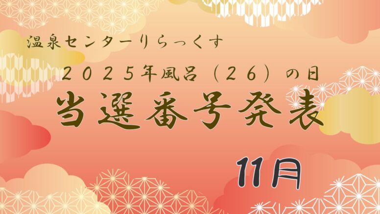 温泉センターりらっくす 2025年11月 風呂の日当選番号発表